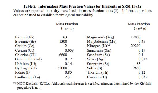 表 2 提供了不符合 NIST 认证标准的附加测量值的估计值,并作为材料成分的附加信息提供。 NIST 信息值是 SRM 用户可能感兴趣的值,但没有足够的信息来评估与该值相关的不确定性,因此不提供不确定性
